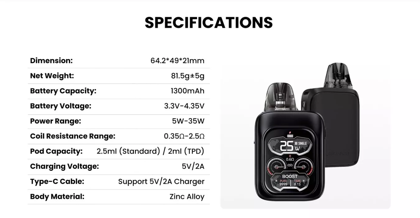The Lost Vape Ursa Baby 3 Pro Pod System Kit is a compact yet highly advanced pod device designed for users who want smart features, adjustable power, and premium build quality in a portable format. Equipped with a full color touch display and Bluetooth 5.0 connectivity, it delivers modern control alongside strong performance. With a 1300mAh built in battery and support for the full Ursa cartridge series, it suits both MTL and RDL vaping styles.