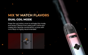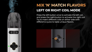 The Caliburn Explorer balances unique features with a beginner-friendly design. The “four-leaf clover” button on the front of the device controls which half of your pod is activated. Press the left or right buttons to activate the corresponding coil. Press down, and your device will switch coils with every inhale. You can even press up to activate both coils at once, allowing for an inhale that delivers a fusion of both of your chosen flavours in one puff.